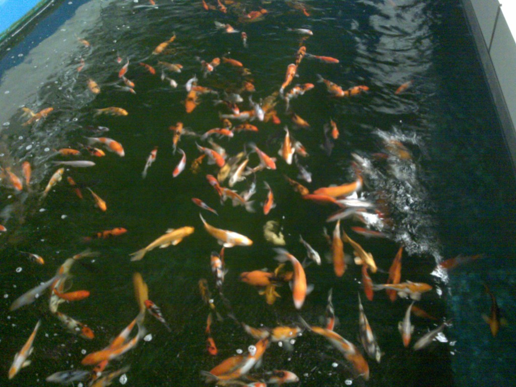 Unser gesamter bestand ist 700 m3 teichwasser , alle bassins sind nicht beheizt , so damit wir der stärkste fische bekommen , natürlich haben wir auch alle anderen arten von teich fische wie goldorfen - goldfische gold elritze - shubunkin - mondfisch etc etc